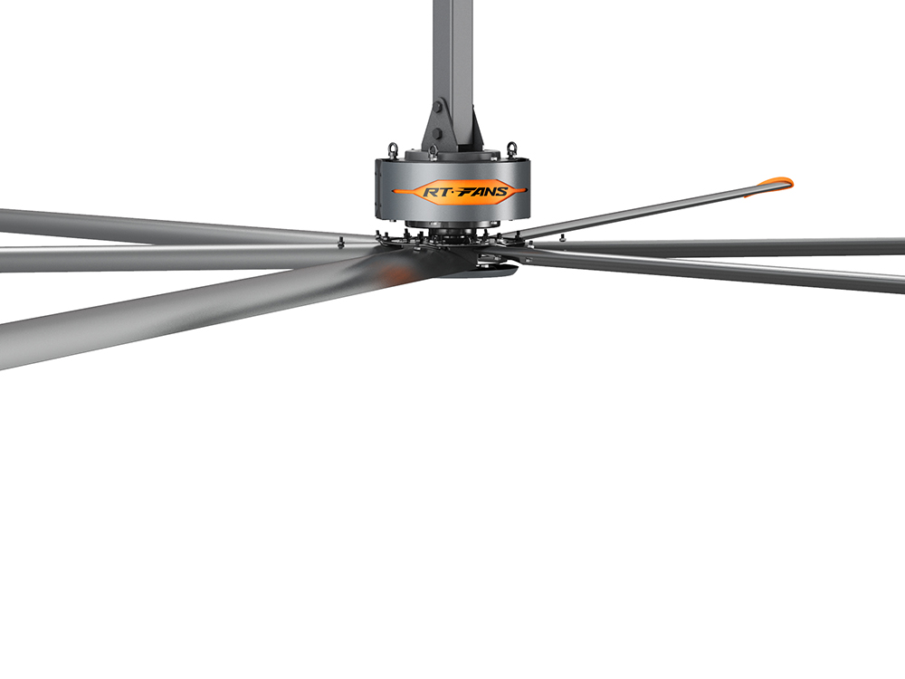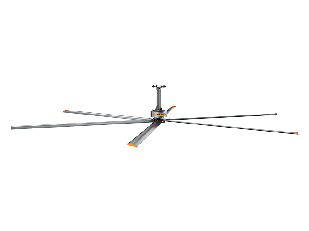 瑞泰風(fēng)自主研發(fā)制造了一臺HVLS大風(fēng)量、低轉(zhuǎn)速工業(yè)大風(fēng)扇。優(yōu)勢